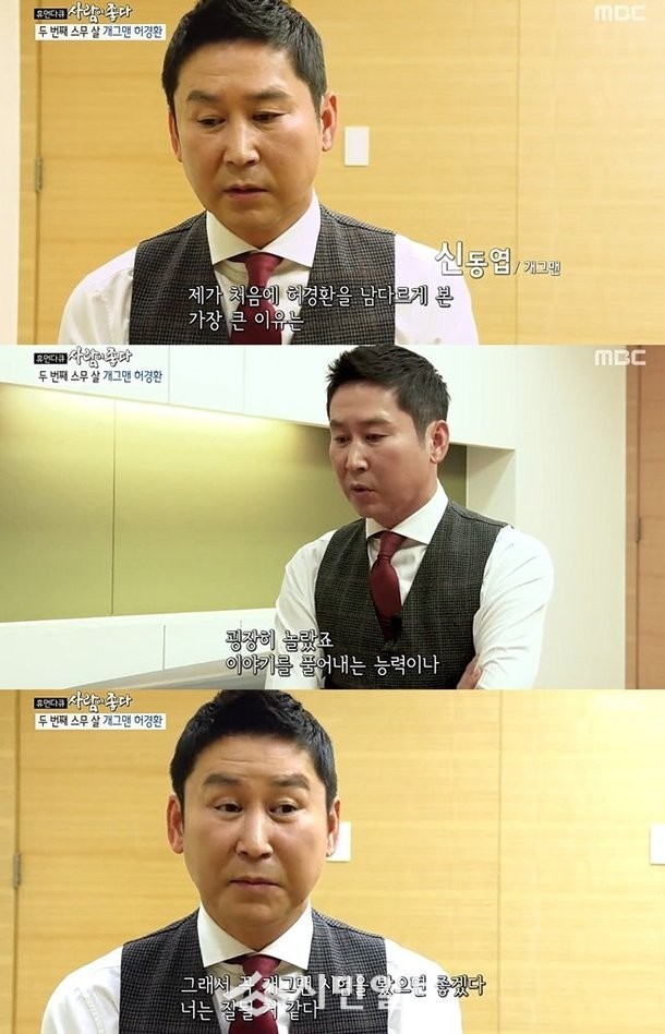 신동엽은 "처음에 허경환을 남다르게 본 가장 큰 이유는 말맛이 좋아서였다"라며 "이야기를 풀어내는 능력이나 선천적인 재능이 대단했다"고 회상했다. 이어 "그래서 꼭 개그맨 시험을 봤으면 좋겠다. 너는 꼭 잘 될 것 같다고 말했다"고 전했다.