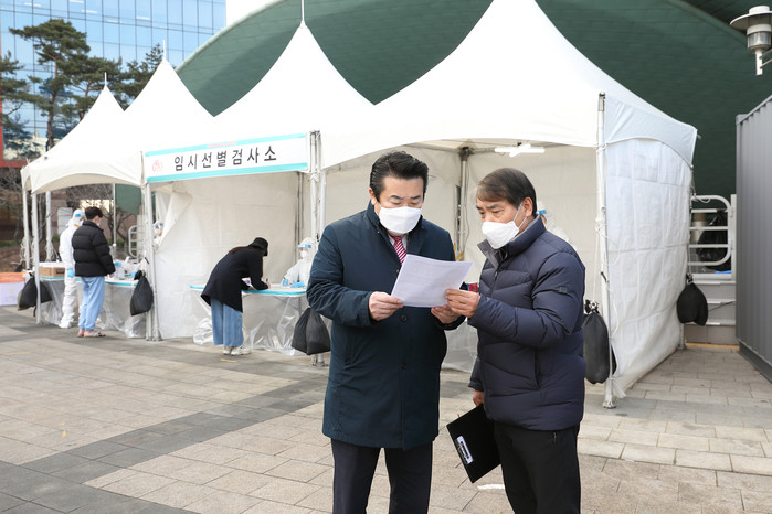 [시민일보 = 이대우 기자] 박동웅 서울 구로구의장은 최근 오류역과 신도림역에 설치·운영 중인 임시선별진료소 2곳을 차례로 방문해, 추운날 휴일도 없이 임시 선별진료소 운영에 애쓰고 있는 의료진, 공무원 등 근무자들을 격려했다.