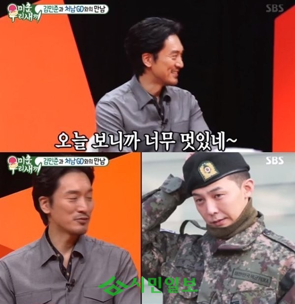 특히 김민준은 무심한 듯 잘 챙겨주는 처남 지드래곤에게 폭풍 감동을 받았던 에피소드를 두고 흐뭇한 미소를 지었다. 그는 "저랑 성격이 비슷하다. 누나에게 모자 2개를 건네며 내 몫까지 챙겼다더라"며 자랑을 이어갔다.