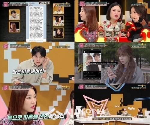 이날 방송에서는 결혼을 약속했지만 좀처럼 스킨십을 하지 않았던 남자친구에게 4년간 함께 한 ‘파트너’가 있다는 사실을 알게 된 고민녀의 사연이 펼쳐지며 스튜디오를 충격에 빠트렸다.