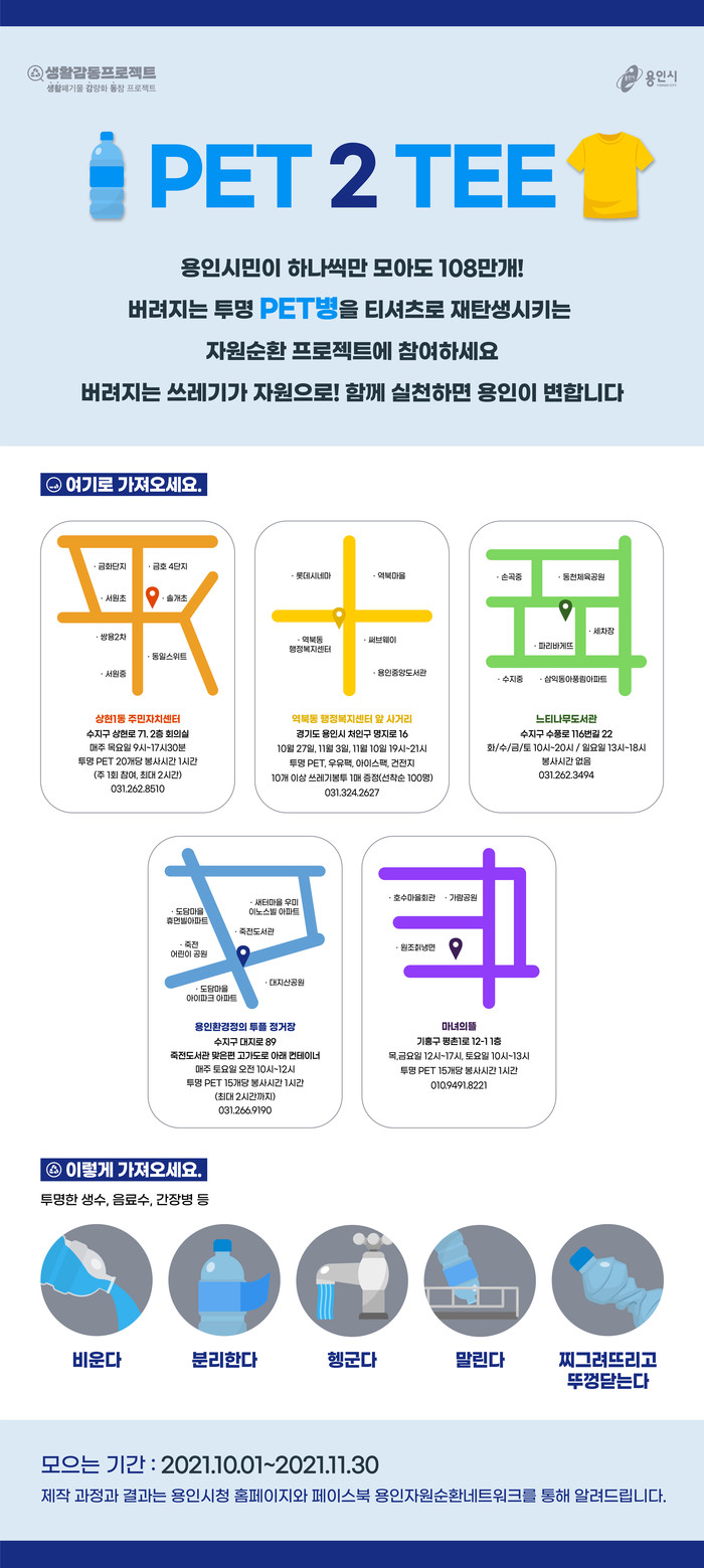 [용인=오왕석 기자] 용인시가 버려진 페트병으로 티셔츠를 만드는 시민참여 프로젝트 ‘PET2TEE’를 시작했다.
