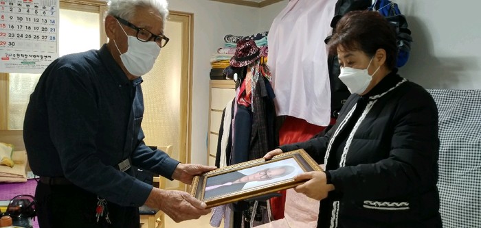 경기 수원시 권선구 세류2동 지역사회보장협의체는 지난 23일 저소득층 노인 18명에게 장수사진을 전달했다. 협의체는 노인들의 무병장수를 기원하는 마음을 담아 노인가구를 직접 방문해 장수사진을 전달했다. 사진은 협의체 관계자가 노인에게 사진을 전달하고 있는 모습. (사진제공=권선구청)