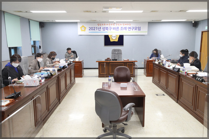 성북구 바른 조례 연구모임은 지방자치법 전부개정안을 기본 골자로 성북구의 현존 조례를 정비하고, 구민 복지를 증진할 새로운 조례안을 발굴하기 위해 조직됐다.