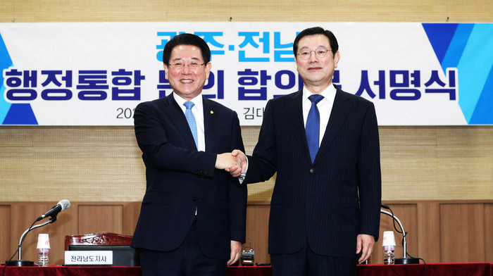 전남도와 광주시의 행정통합 논의가 양측 수장들의 합의문에 서명하면서 본 궤도에 올랐다.