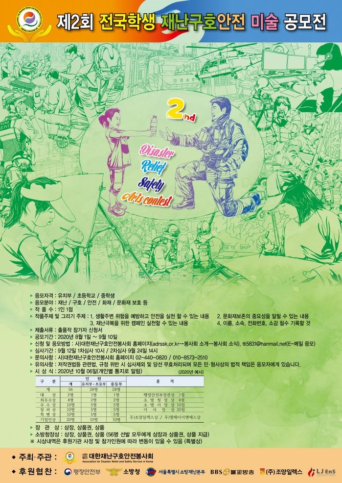 유치원생, 초등학생, 중학생들이 참여 가능하며 응모분야로는 재난, 구호, 안전, 화재, 문화재 보호로 다양하다.