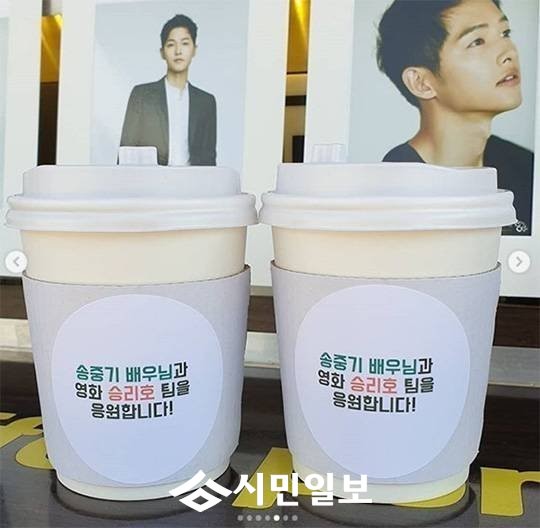 공개된 사진에는 "송중기 배우님과 영화 '승리호' 배우, 스텝분들을 응원합니다!! 콘텐츠지음 한석원"이라는 문구가 적혀있어 눈길을 끈다.