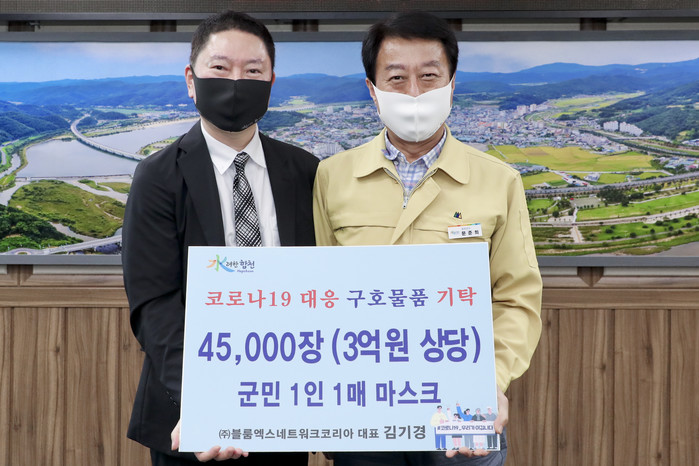 합천군은 ㈜블룸엑스네트워크코리아(대표 김기경)로부터 코로나19 극복을 위해 사용해 달라며 3억원 상당의 FDA 승인 재활용 마스크 4만5000매를 전달받았다다 23일 밝혔다.