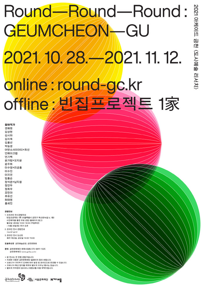 [시민일보 = 여영준 기자] 서울 금천문화재단은 오는 12일까지 2000년대 이후 금천구 예술의 흐름을 시각예술을 중심으로 조사해보는 프로젝트 ‘2021 아케이드 금천: 도시예술 리서치’의 결과 전시회 ‘라운드 라운드 라운드: 금천구(Round-Round-Round : GEUMCHEON-GU)’를 개최한다고 밝혔다.