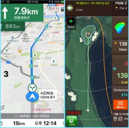 거리측정은 기본이고 코스 등고 도그레그 코스 정보, 해저드· OB구역, 그린주변과 그린 상태 등 종합 코스공략 정보를 제공해 마치 골프 시합에 출전하는 선수와 캐디가 현장에서 가장 중요하게 참고하는 시합용 야디지북 같이 실제 위성지도 디지털 코스매니지먼트 기능이 무료 이용이 가능해진 것이다.