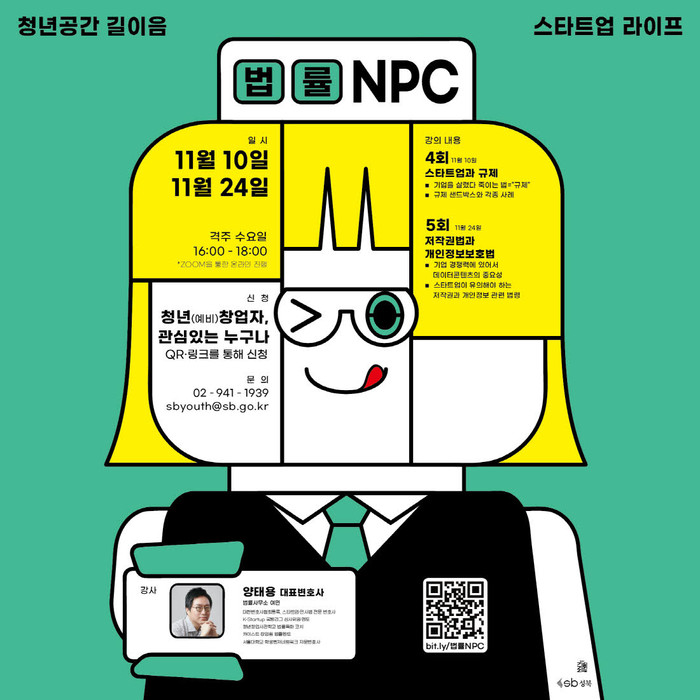 [시민일보 = 홍덕표 기자] 서울 성북구(구청장 이승로)가 삼양로에 위치한 청년공간 길이음에서 ‘스타트업 라이프! 법률NPC(Non-player character)’ 강의 프로그램을 오는 11월 말까지 운영한다.