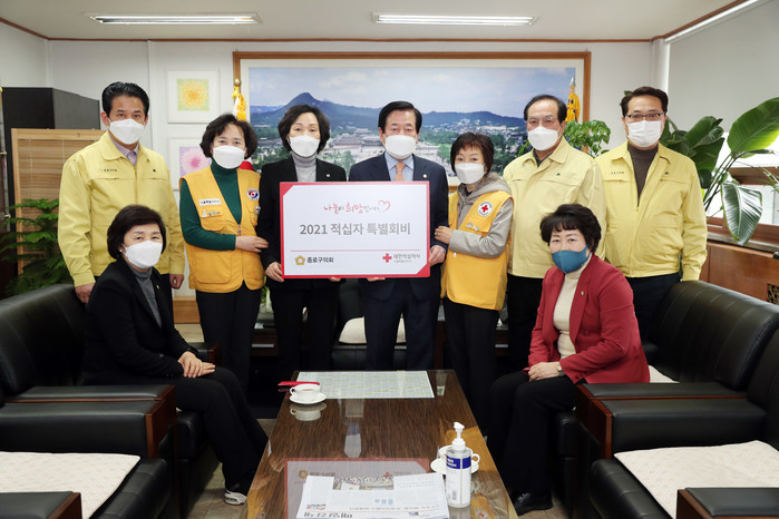 [시민일보 = 이대우 기자] 서울 종로구의회(의장 여봉무)는 최근 의장 집무실에서 대한적십자사 서울특별시지사에 적십자 특별회비를 전달했다.