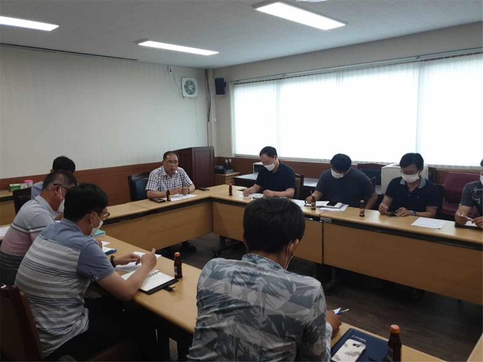 경기 이천시 상하수도사업소는 최근 노후관 교체공사 관련 시공업체(9곳) 대표 및 실무자들과 함께 간담회를 개최했다. 간담회에서는 시와 시공사 간 상호 유기적인 협조관계 구축과 제수밸브 개폐시 유의사항 및 적수예방 교육 및 안전사고 예방 등에 대해 심도 있는 대화를 했다. 사진은 간담회 모습. (사진제공=이천시청)