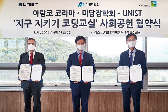 [시민일보 = 이승준] UNIST, 미담장학회, 아람코 코리아는 28일 울산 소외계층 교육격차 해소를 위한 울산 교육기부사업 협약식을 가졌다.