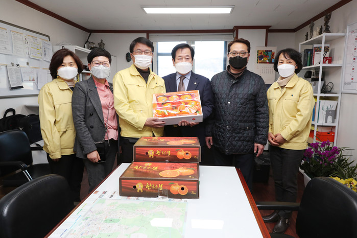 또한 장기간 코로나19 확진 방지를 위해 고군분투하고 있는 직원들에게 구민을 대표해 감사의 뜻을 전하고 격려물품을 전달하였다.