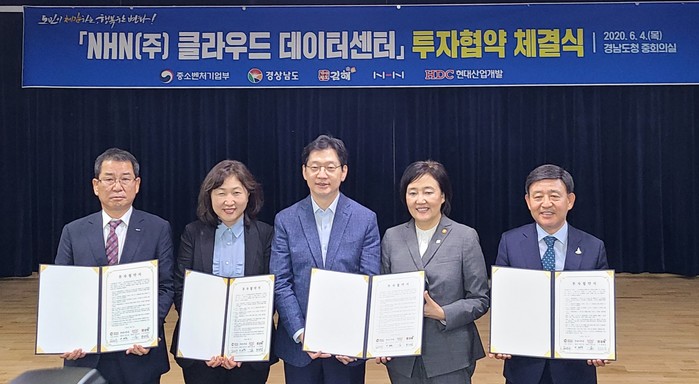 김해시는 지난 4일 경남도청에서 경남도, NHN(주), HDC현대산업개발과 NHN 클라우드 데이터센터 및 스마트홈 시범단지 조성을 위한 투자협약을 체결했다고 밝혔다.