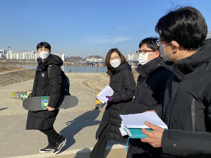 이에 송명화 의원은 보드 동호인들의 안전한 여가문화 공간 마련을 위해 2019년부터 수차례 현장을 방문하여 부지를 검토하고 한강사업본부와 협의를 거듭해 왔다. 이날 서울시 한강사업본부 관계자 및 서울시의회 관계자, 보드 동호회 대표 등과 함께했다.
