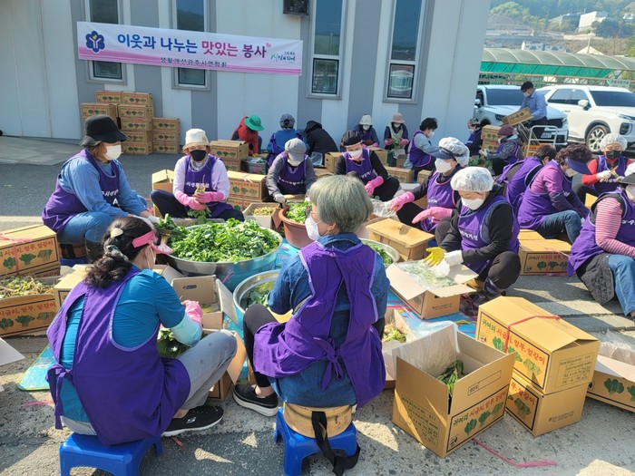 생활개선광주시연합회는 최근 경기 광주시 농업기술센터에서 ‘이웃사랑 열무김치 나눔’ 행사를 열어 농가에서 직접 생산한 농산물을 활용해 김치를 담가 홀몸노인 등 복지사각지대 이웃 200여가구에 전달했다. 사진은 이날 봉사자들이 김치 재료를 손질하고 있는 모습. (사진제공=광주시청)