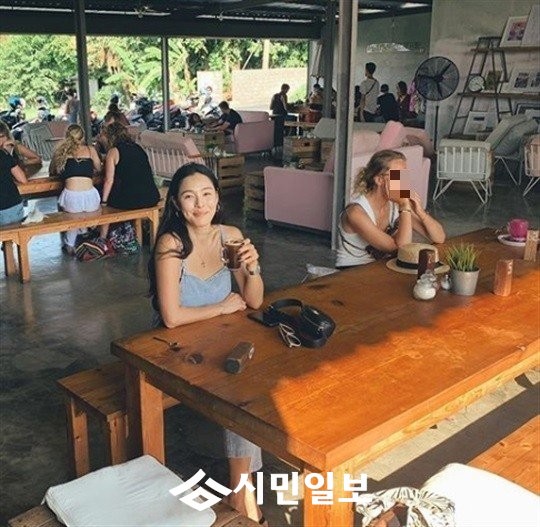 공개된 사진 속 가희는 발리의 한 카페에서 여유로운 일상을 즐기며 환한 미소를 짓고 있다.