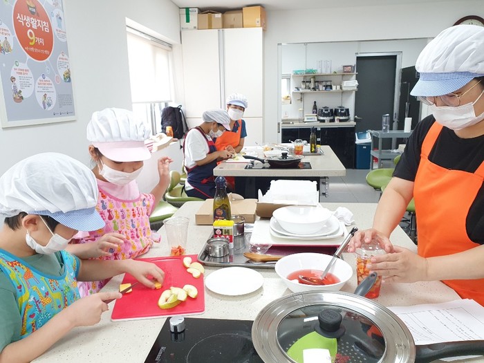 서울 양천구 목동보건지소는 지난 5~26일 정신건강보건센터와 협력해 'ADHD 자녀와 엄마가 함께하는 마음힐링 키즈쿠깅 교실' 프로그램을 운영했다. 요리 전과정을 ADHD와 발달장애를 겪고 있는 자녀와 엄마가 함께 체험하며 힐링을 찾아가는 프로그램이다. 사진은 키즈쿠킹 교실 참가자들이 요리를 하고 있는 모습. (사진제공=양천구청)