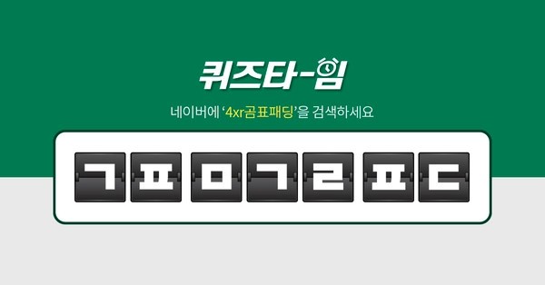 13일 오후 출제된 '4XR곰표패딩' 관련 퀴즈는 '4XRX곰표 두번째 콜라보 컬렉션의 타이틀은?(초성:ㅋㄹㅇㅎㄹㅌㅈ)'에서 초성 부분을 맞추는 문제다.