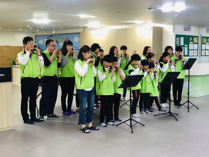 경기 의정부시 신곡2동 청소년지도협의회는 최근 효누리 노인복지센터 노인을 위한 오카리나 연주 봉사활동을 진행했다. 사진은 참여자들이 오카리나 연주를 선보이는 모습. (사진제공=의정부시청)