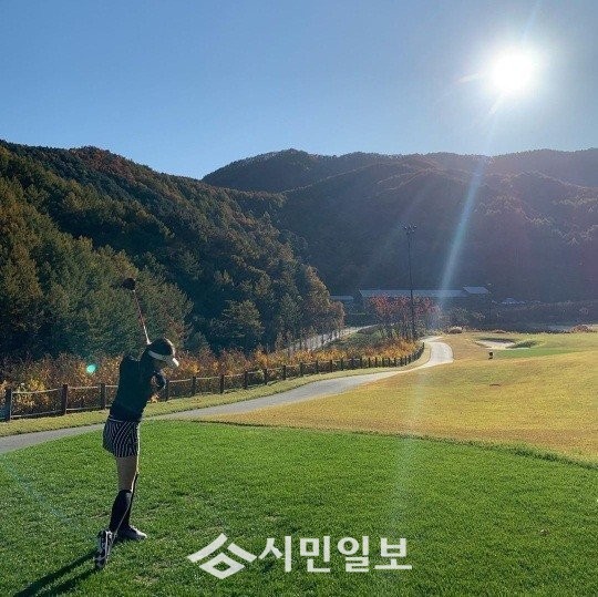 공개된 사진 속 손연재는 골프를 치고 있다. 멋진 자세로 골프에 열중하는 모습이 인상적이다.