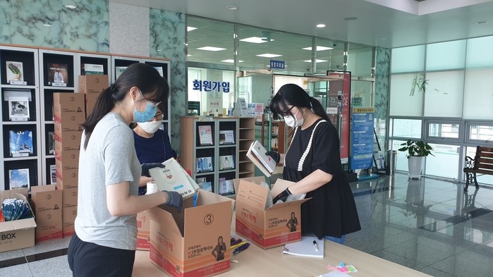 도서 반납은 한마음도서관 입구 무인반납기를 통해 24시간 비대면 반납이 가능하며, 책 소독기를 활용한 소독도 실시하고 있다.