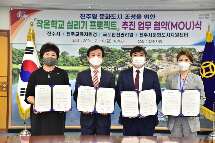 이번 협약을 계기로 진주시와 진주시교육지원청, 국토안전관리원과 진주시 문화도시지원센터는 △문화도시 진주 조성에 필요한 사업 △작은 학교 지원에 필요한 사업 △인적 자원교류 및 사회적 가치 창출을 위한 지역사회 공헌활동 등 다양한 분야에서 문화도시 진주 조성을 위한 사업을 펼쳐나갈 예정이다.