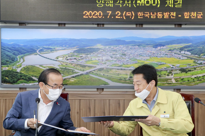 이날 협약은 합천군 동부지구에 약57만㎡(17만평)에 총 사업비 8,700억원이 투입되어 550MW급의 천연가스 발전소와 신재생 발전단지를 조성하는데 서로 돕는다는 내용이다.