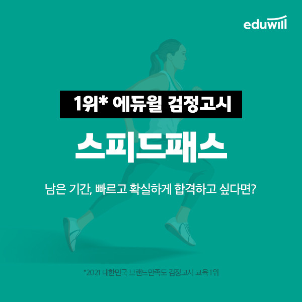[시민일보 = 여영준 기자] 종합교육기업 에듀윌(대표 박명규)이 얼마남지 않은 2021년 2회 고졸 검정고시를 준비를 시작하려는 수험생을 위해 2~3개월의 짧은 시간에 효율적으로 학습을 완성할 수 있는 ‘스피드패스반’을 운영하고 있다고 밝혔다.