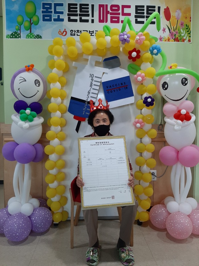 코로나19 예방접종 완료자 일상회복 지원을 위해 인증 이벤트 대상자에게 치매선별검사 실시, 치매예방교육 및 상담, 치매 알리미 책자 및 홍보물품 제공, 합천군 무지개 풍선아트 자원봉사센터에서 제공한 풍선아트 포토존 에서 기념촬영을 실시해 1부는 증정, 1부는 치매안심센터 가족카페에 전시할 예정이다.