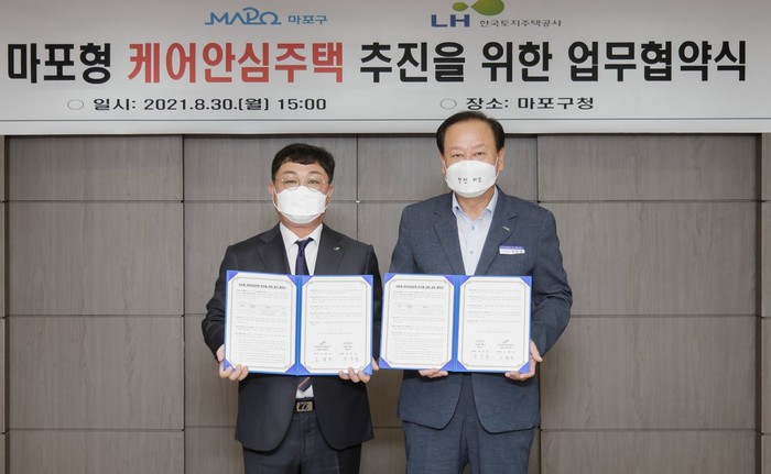 [시민일보 = 홍덕표 기자] 서울 마포구(구청장 유동균)는 최근 한국토지주택공사(이하 LH) 서울지역본부와 업무협약을 체결하고 서울시 최초로 다양한 세대가 이용 가능한 '마포형 케어안심주택' 사업을 추진한다고 공식 발표했다.