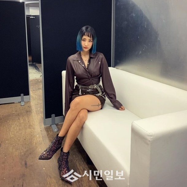 사진 속 핫펠트는 신비로운 파란 머리에 미니 스커트와 가죽 셔츠를 입은 모습으로 걸크러쉬 아우라를 드러내 감탄을 자아냈다.