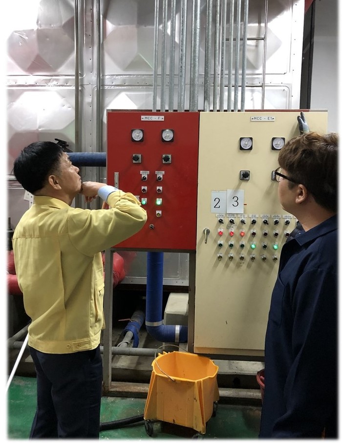 서울 성북구가 15일 손정수 부구청장 주관으로 제280차 안전점검의 날을 맞아 월곡종합사회복지관 등 지역내 다중이용시설 20곳을 대상으로 안전점검을 실시했다. 사진은 손 부구청장(왼쪽)과 관계자가 월곡복지관 기계실을 점검하는 모습. (사진제공=성북구청)