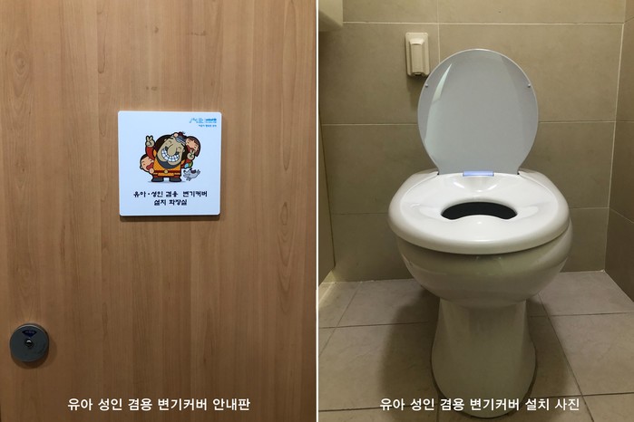 비데가 있는 화장실은 탈부착형 변기커버, 일반 화장실은 일체형 변기커버를 설치했고, ‘유아·성인 겸용 변기커버 설치 화장실’ 안내판을 출입문에 부착해 알아보기 쉽게 함과 동시에 아동친화도시 인증 로고를 함께 삽입해 홍보 효과도 극대화 했다.