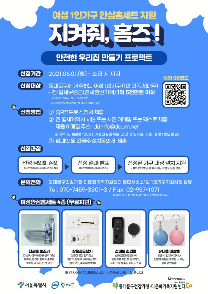 구는 1일부터 동대문구 건강가정·다문화가족지원센터 홈페이지에서 안심 홈 4종 세트 신청 접수를 받는다.