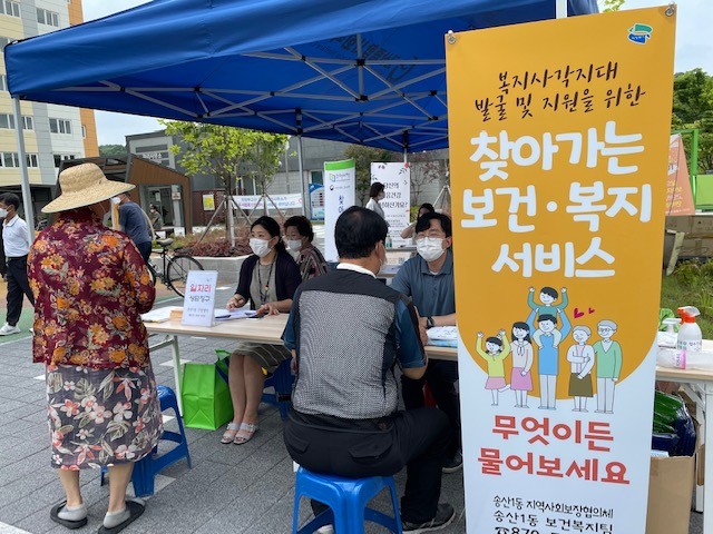 경기 의정부시 송산1동은 최근 고산종합사회복지관, 의정부시자살예방센터, LH의정부권주거복지지사와 함께 고산동 정음마을2단지에서 복지사각지대 발굴 및 지원을 위한 '찾아가는 복지상담'을 진행했다. 사진은 주민들이 상담을 하고 있는 모습. (사진제공=의정부시청)