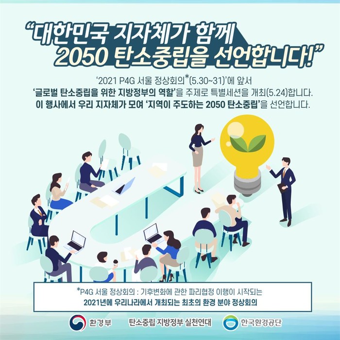 이번 ‘지방정부 탄소중립 특별세션’은 2021 P4G 서울 정상회의 사전행사의 하나로 2020년 7월 발족(81개소)한 실천연대의 기후행동 의지가 확산되어 대한민국의 모든 지자체(243개소)가 2050년 이전에 탄소중립을 달성할 것을 다짐하는 선언문을 도출했다는 점에서 큰 의미가 있다.