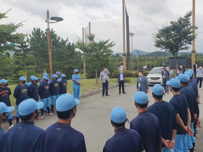 [평택=오왕석 기자] 평택시의회 홍선의 의장은 22일 제55회 대통령배 전국고교야구대회 결승전이 열리는 공주시립야구장을 찾아 결승전을 앞둔 라온고등학교 야구부를 격려했다.
