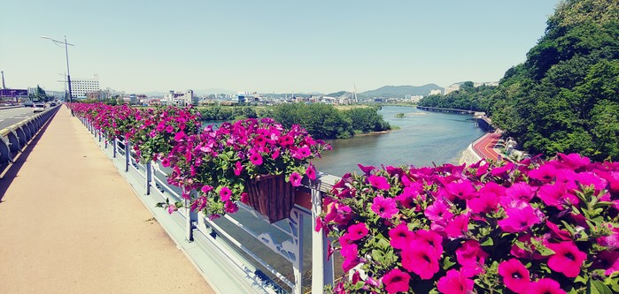 특히, 이번 여름꽃 중 페츄니아는 화려하고 풍성한 자태를 뽐내며 뒤벼리 외 4개소 총 4.1km 구간의 난간화분에 식재되어 남강과 어우러지는 아름다운 꽃길을 연출하게 된다.