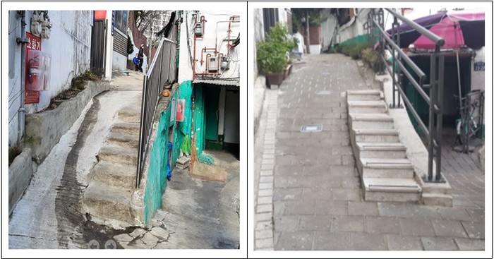 | ▲ (왼쪽부터)공사 전 경사로, 공사 후 경사로.(사진제공=박영한 의원) |