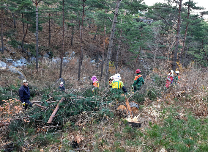 ‘바이오매스산물수집단’은 숲가꾸기 후 산물을 수집하고 주요 도로변의 덩굴을 제거, 건강한 산림자원을 육성하는 사업이다.