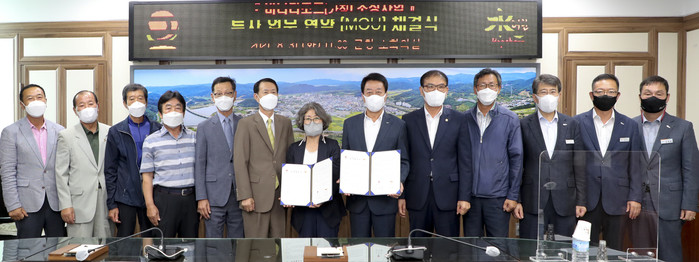 합천군(군수 문준희)은 31일 합천군청 소회의실에서 ㈜바나 윤미란 대표이사와 ‘바나리조트(가칭) 조성사업‘에 대한 투자 업무협약(MOU)을 체결했다고 밝혔다.