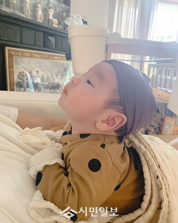 서수연은 자신의 인스타그램에 "점점 깨어있는 시간이 길어지고 있어요 2초 고개 든 순간 그리고 바로 꽈당 고슴도치 맘 52일차"라는 글과 함께 사진을 게재했다.