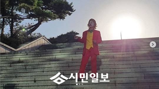 공개된 사진에서 박나래는 조커와 똑같은 얼굴로 분장한 채 야외 계단에 서 있다.