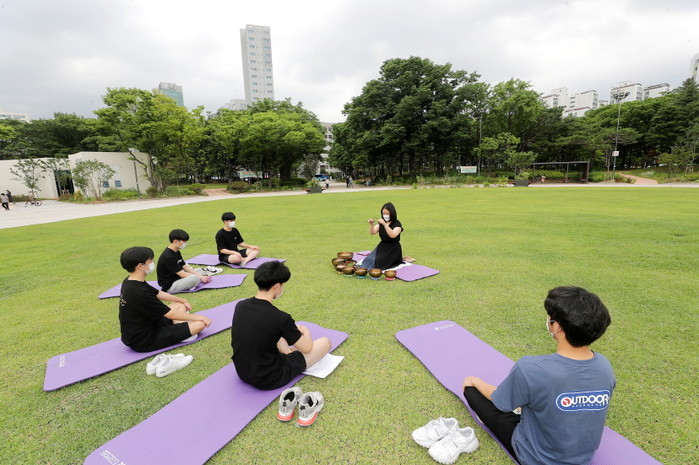 | ▲ 양천공원 중앙잔디광장에서 진행 중인 명상프로그램. (사진제공=양천구청) |