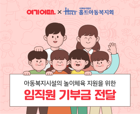 여기어때는 23일 사내 기부 캠페인 ‘키다리 아저씨’의 모금액 전액을 사회복지법인 홀트아동복지회에 전달한다.