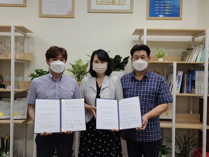 경기 양주시 회천3동 지역사회보장협의체가 2일 양주지역자활센터와 지역내 취약계층 식사지원을 위한 업무협약을 체결했다. 이번 협약은 학기 중 주 1회 시 기초푸드뱅크에서 도시락 지원을 받는 대상자가 방학에도 상응하는 지원을 받도록 하기 위해 마련됐다. 사진은 협약 체결 후 관계자들이 기념촬영을 하는 모습. (사진제공=양주시청)