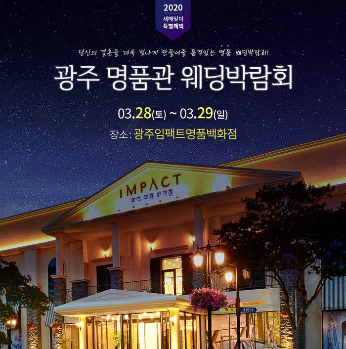 웨딩박람회 사전신청은 온라인을 통해 가능하며 사전 신청 후 무료 초대장을 받아볼 수 있다. 오는 3월 28일~29일 이틀간 임팩트 명품백화점에서 개최되며, 온라인으로 명품관 웨딩박람회에서 제공하는 다양한 혜택도 확인할 수 있다.