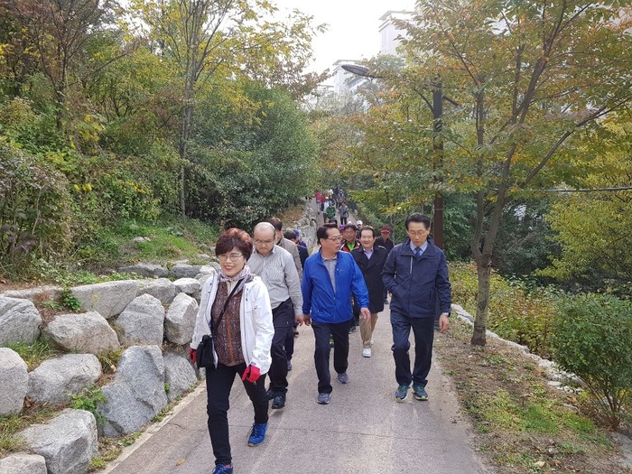 최근 서울 종로구 무악동이 지역 주민 200여명과 함께 인왕산과 안산 일대 약 7km 코스를 약 2시간 동안 걷는 ‘Refresh day! 제2회 우리동네 걷기대회’를 개최했다. 사진은 산을 걷고 있는 참가 주민들의 모습. (사진제공=종로구청)
